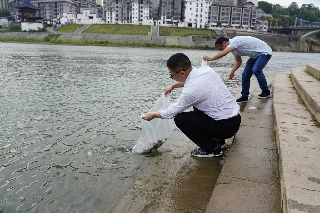 随后,活动转移至犁头嘴码头,“鱼跃生态,共筑美好家园”行动拉开帷幕。归侨侨眷与新阶代表人士携手拿起鱼苗,小心翼翼地将一尾尾鲜活的鱼苗放入水中。大家纷纷表示,此次放鱼活动不仅是对中华传统环保理念的传承,更让每个人切身感受到守护生态、共建美丽家园的责任,未来也将继续为洪江区的生态建设贡献力量。