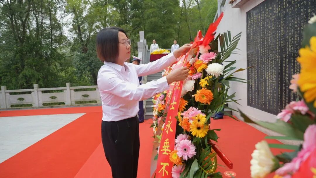 鲜花散发着沁人心脾的清香,寄托着对人民英雄的深切缅怀和崇高敬意。杨健桃迈步上前,仔细整理花篮缎带。