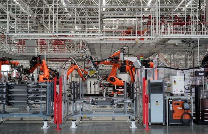 这是湖南省长沙市三一智联重卡产业园内的生产场景(2025年4月23日摄)。新华社记者 余春生 摄年终岁末的三一智联重卡产业园,生产线上一派火热景象,每6分钟就有一台蓝色电动重卡下线。2025年,三一电动重卡国内销售额同比增长125%。
